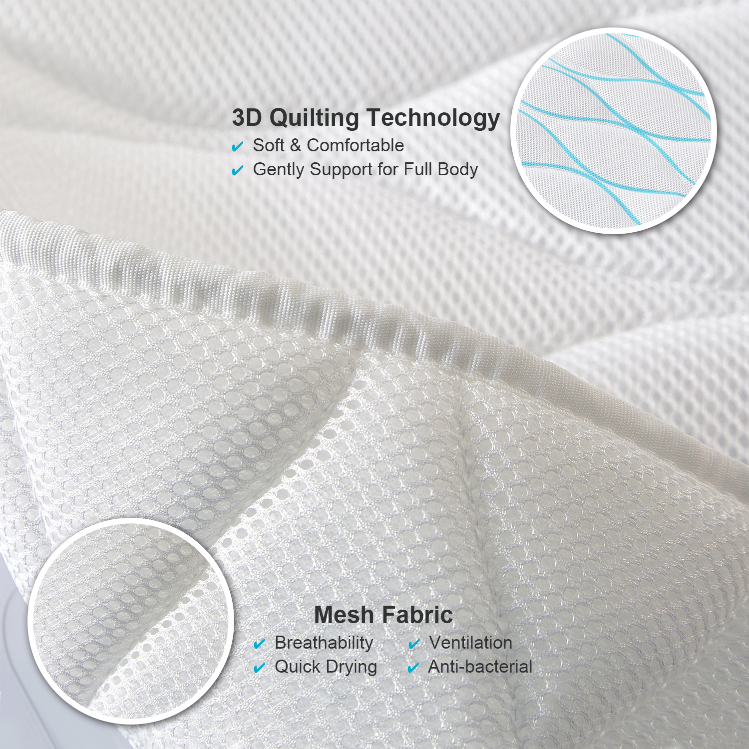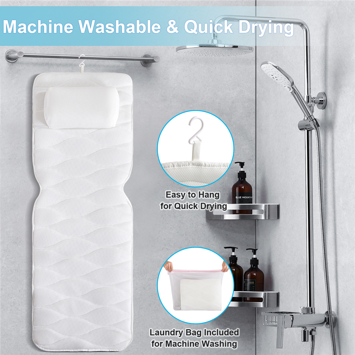 ♥BREATHABLE&QUICK-DRYING DESIGN: New 3D quilted Mesh Material allows water & air to flow through the pillow for quick drying. Water permeable layers with extra breathability prevent water from pooling to keep your bath pillow mildew-free and odorless