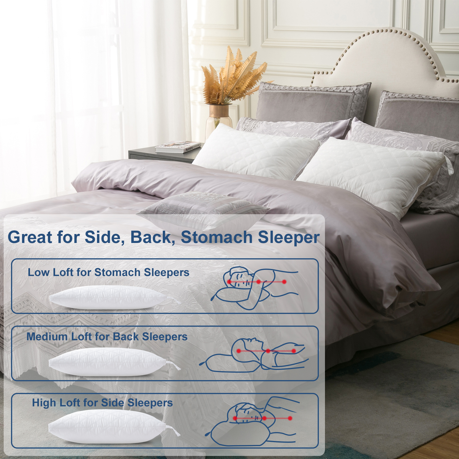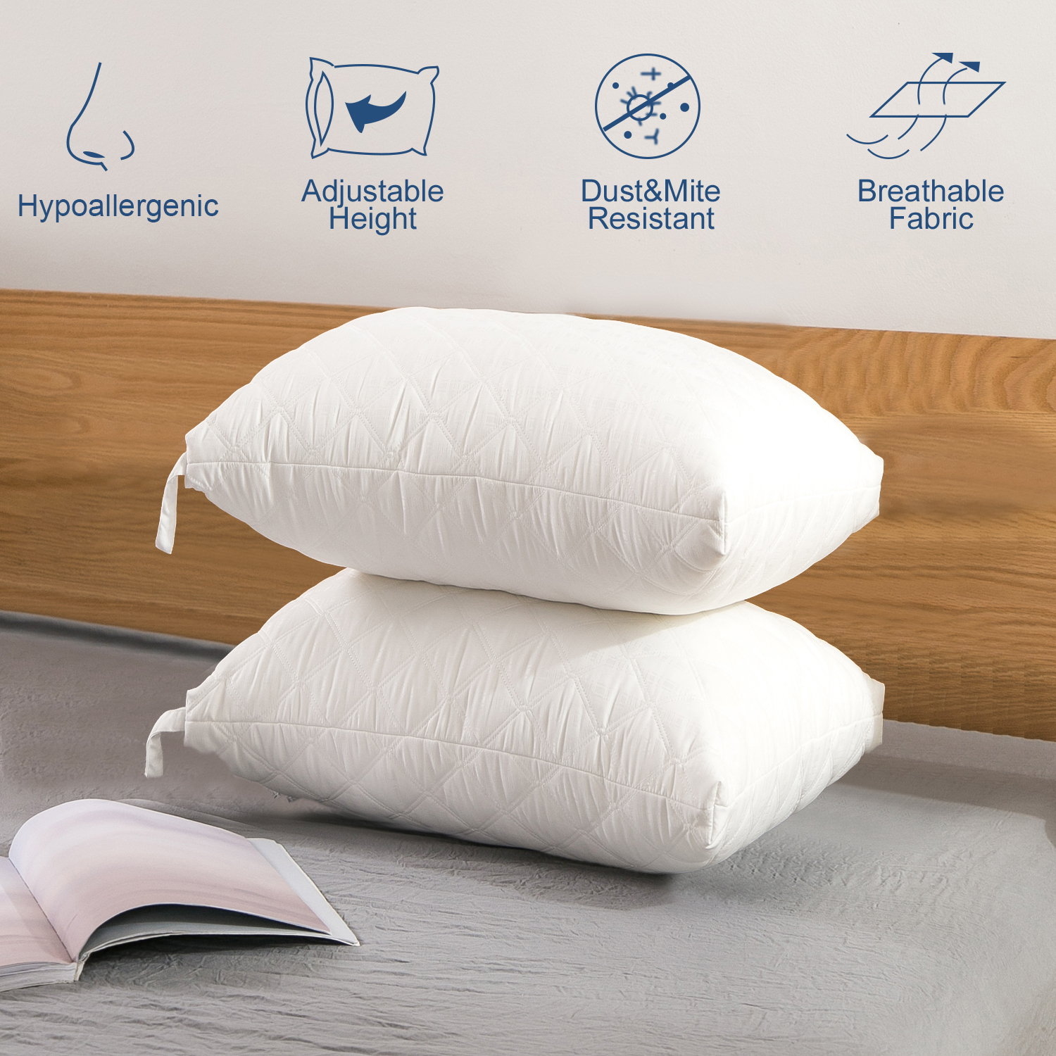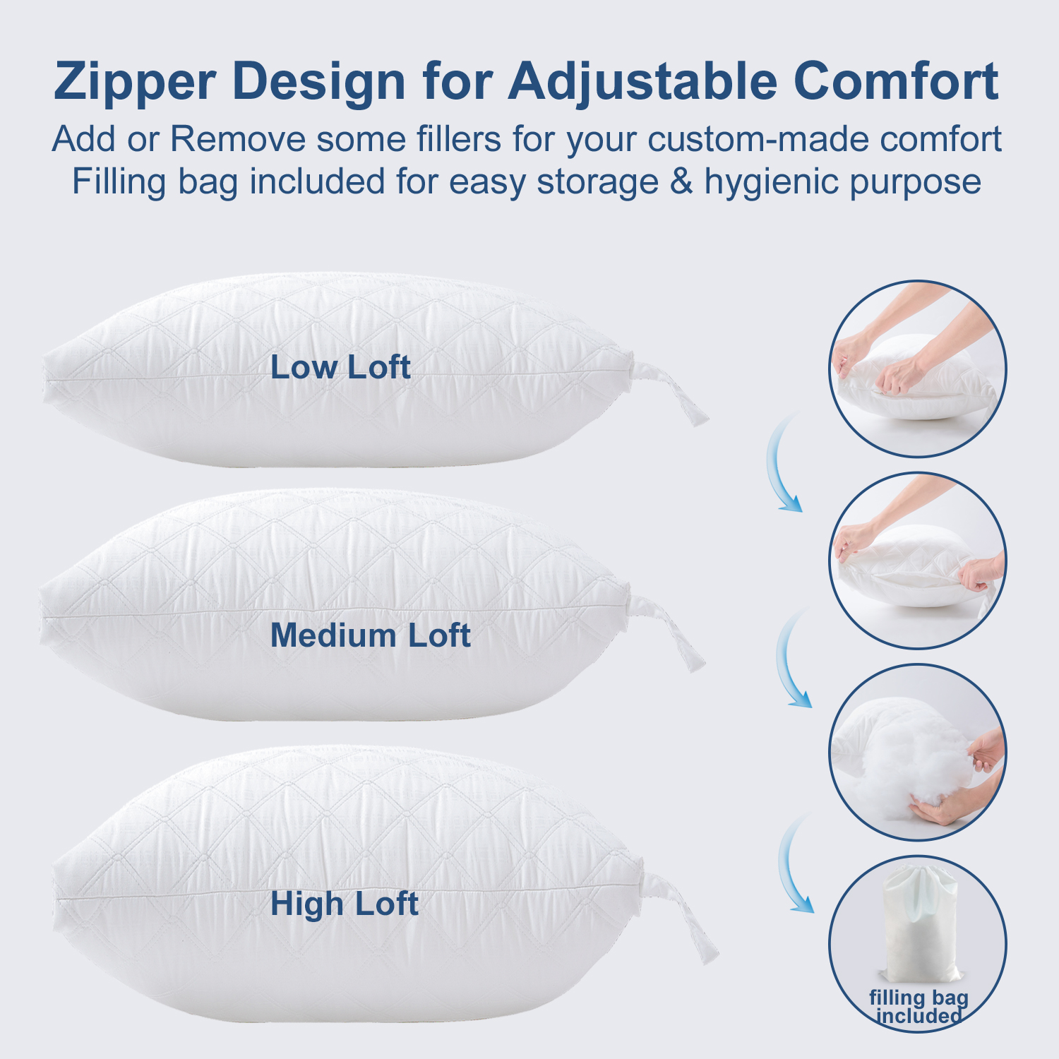 2 PACK FULLY ADJUSTABLE PILLOWS: Soft also extremely full. Overstuffed 1100g / 2.4lb filling to meet both soft and firm. Too firm for you? Remove some fillings. Too soft? Add some fillings. ADD or REMOVE filling to adjust to your sleeping comfort, enjoy a personalized sleep experience. Different levels of support to meet the needs of back, side, and stomach sleepers.