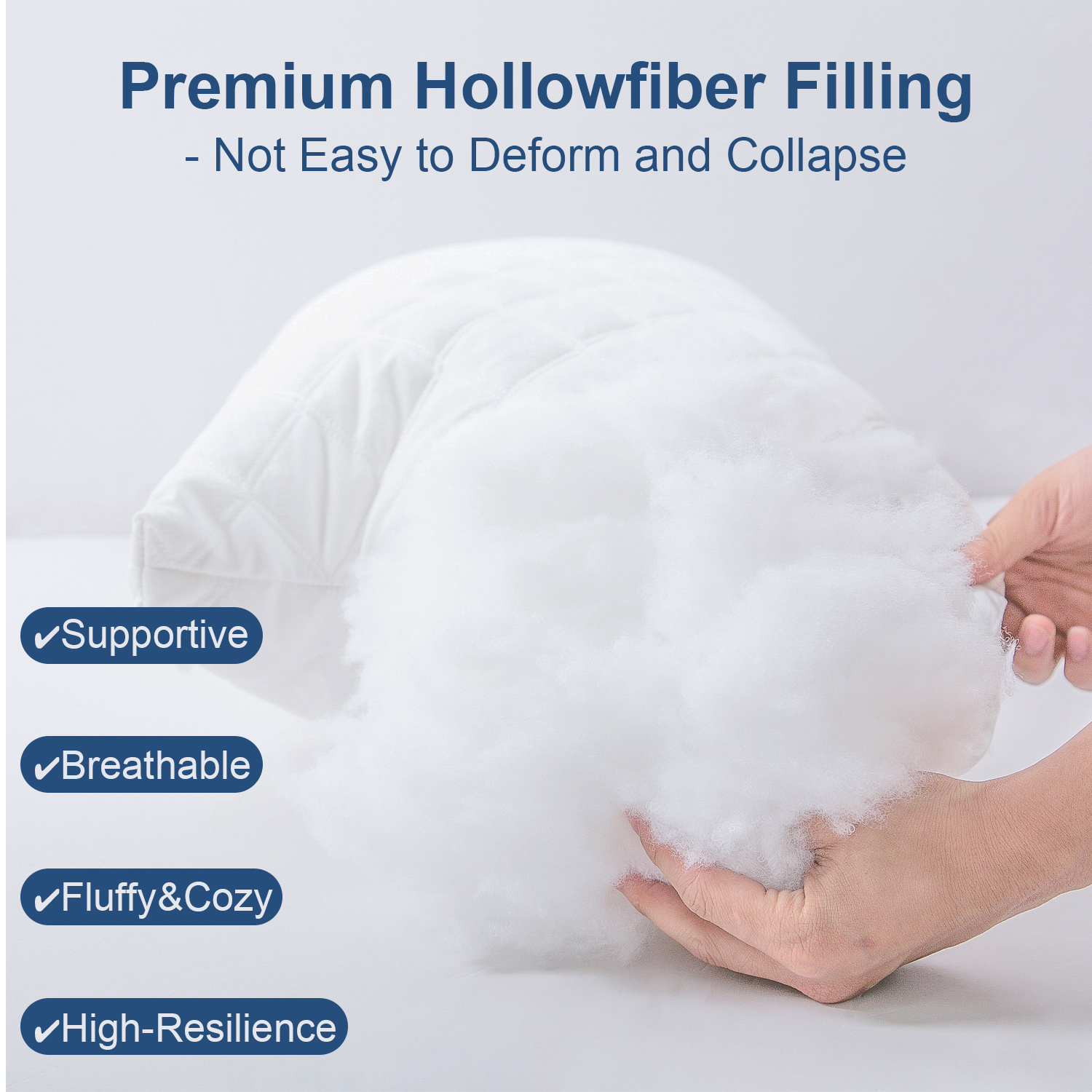 SUPER FLUFFY AND SUPPORTIVE: Filled with supportive 100% super plush polyester fiber which provides maximum fluffiness, bounce and support for neck and head. Not easy to flatten. Soft enough to ensure you sleep restfully whole night yet firm enough to maintain their fullness and shape