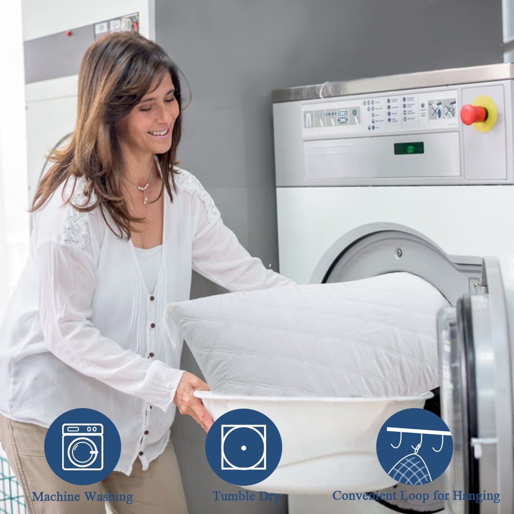 FULLY WASHABLE FOR EASY CARE: Looking for convenience, this pillow is suited to be machine washed in the gentle cycle in cold water to keep pillows fresh. Air dry in the sun or tumble dry on low temperature when need. Do not bleach or iron